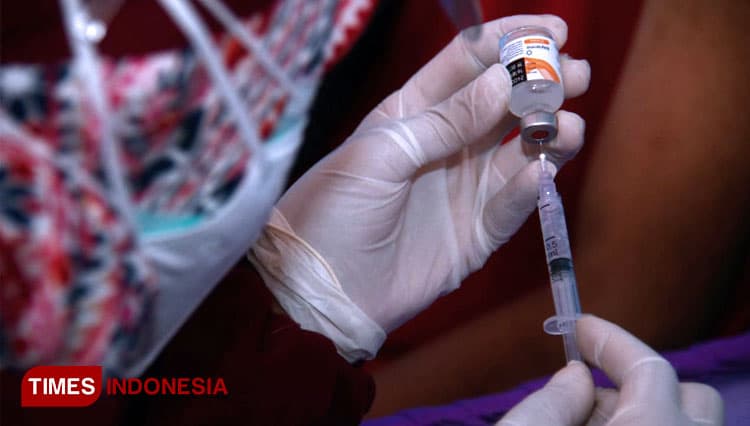 TIMES Timika/Salah satu tenaga kesehatan saat mengisi dosis vaksin untuk disuntikkan. (FOTO: Adhitya Hendra/TIMES Indonesia)